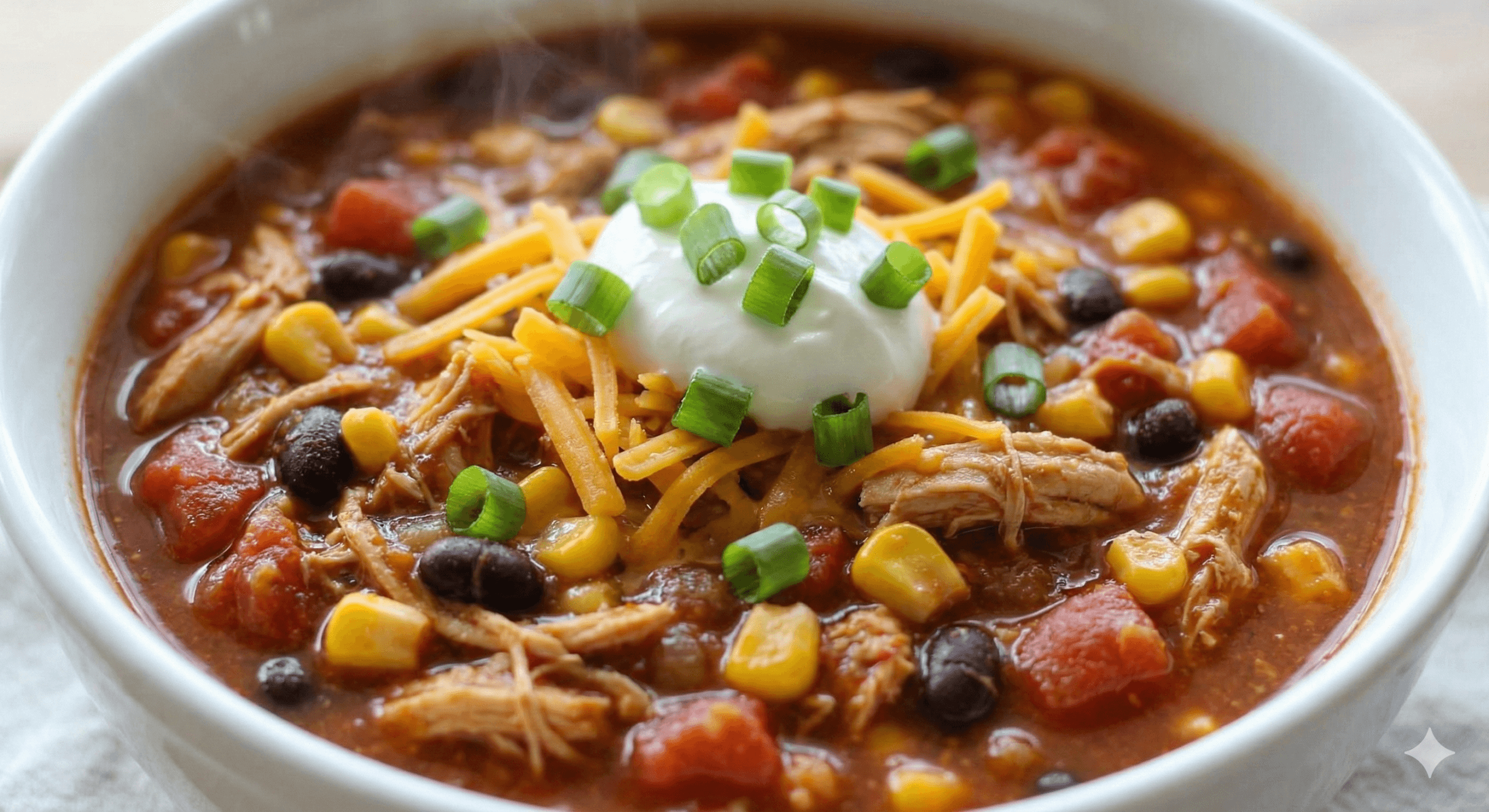 Hearty chicken and corn chili slow-cooked for a comforting and macro-balanced meal.