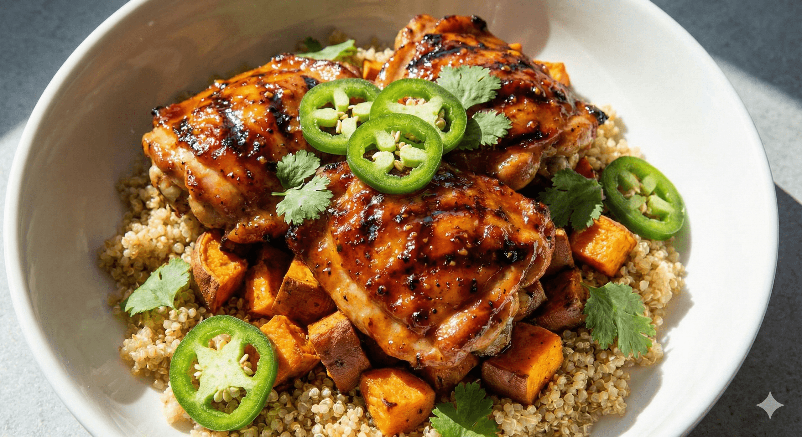 Sweet and spicy hot honey chicken served over a balanced base for a flavorful kick.