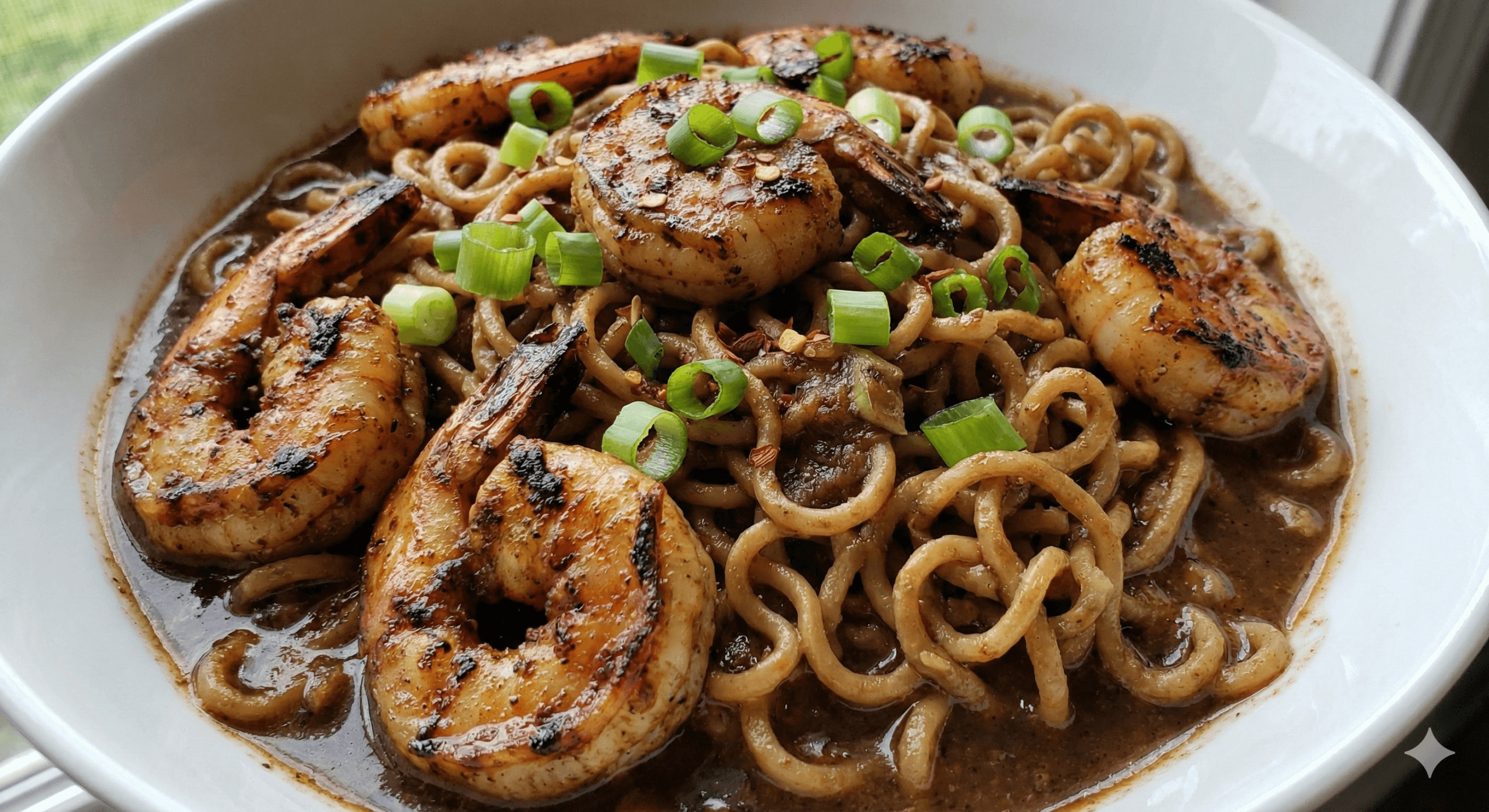 A spicy Caribbean-inspired meal featuring zesty jerk shrimp over hearty, protein-packed pasta.
