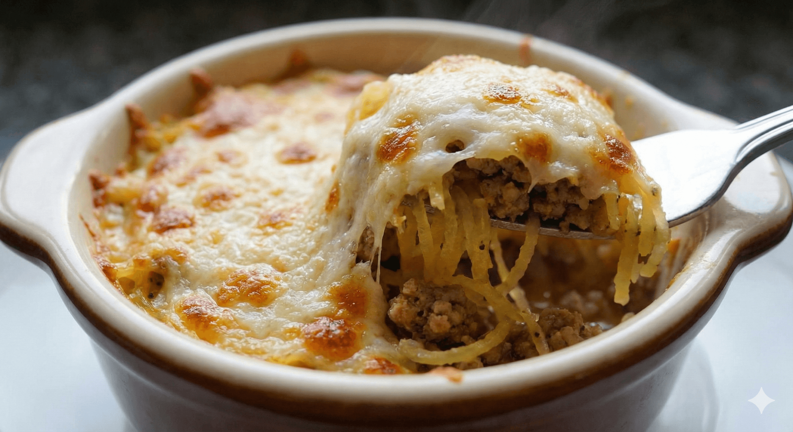 A wholesome low-carb casserole featuring tender strands of spaghetti squash and seasoned ground turkey.