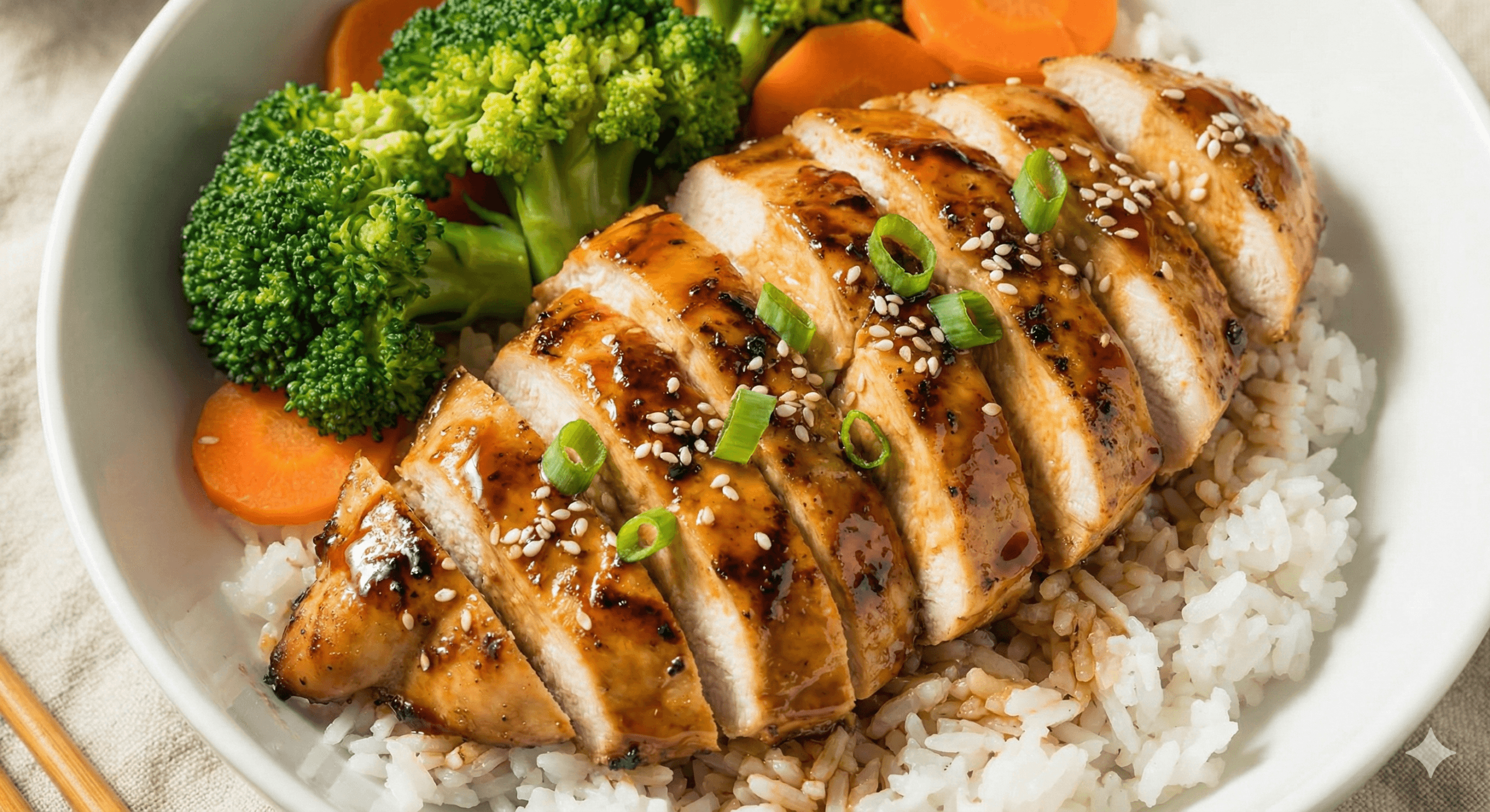 Classic savory teriyaki chicken served over rice with a balanced macro profile.